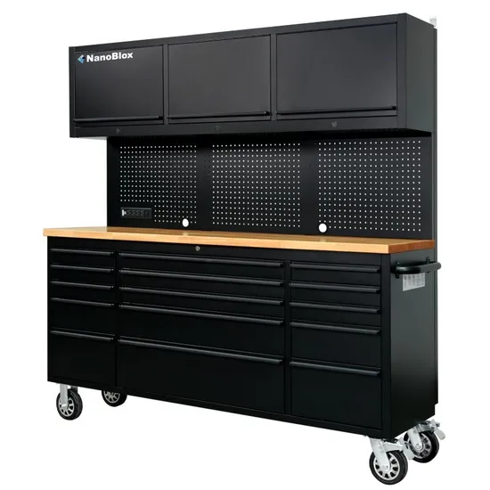 Organized Storage: A rugged Bamboo Worktop gives you the room you need for gardening, crafts, and home repairs, while providing a warm wood feel to your space. Get organized, and simplify your life, with Bold Series Garage Cabinets.