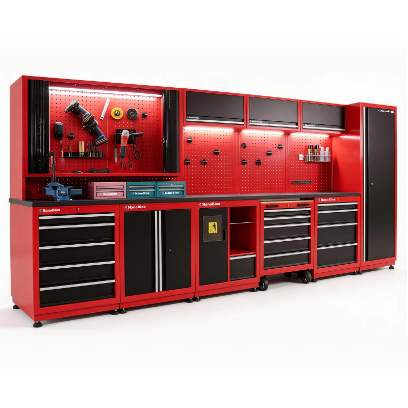 Nanoblox Garage Workbench Rolling Tool Cart with Drawers Boxes Industrial Garage Storage